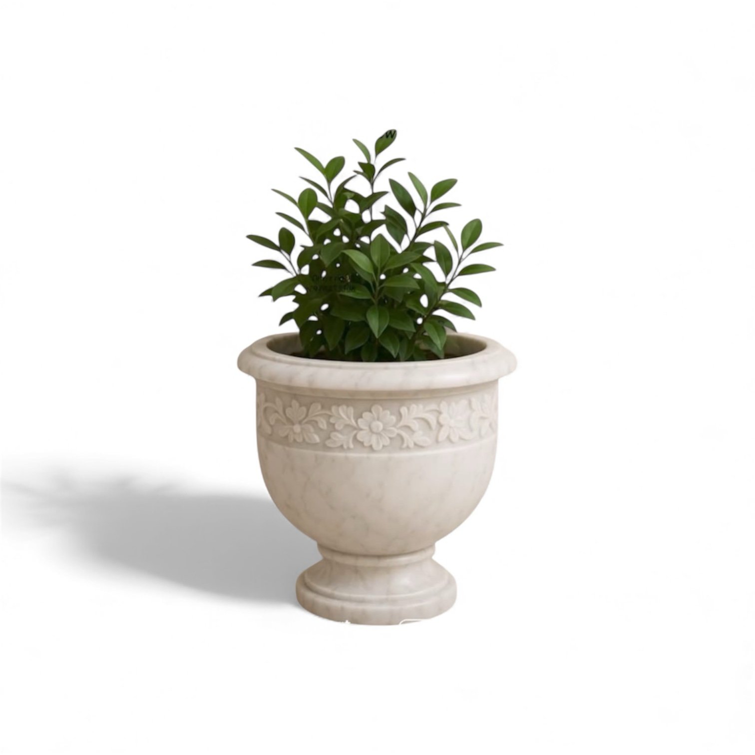 Flower Design Marble Tulsi Pot ( Small )